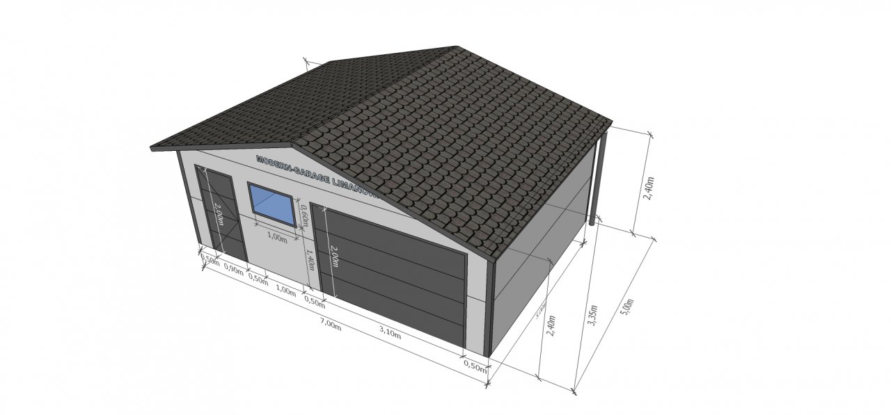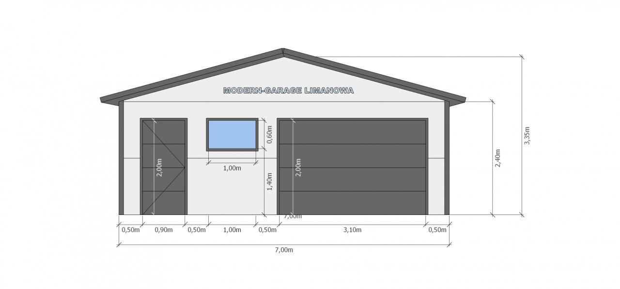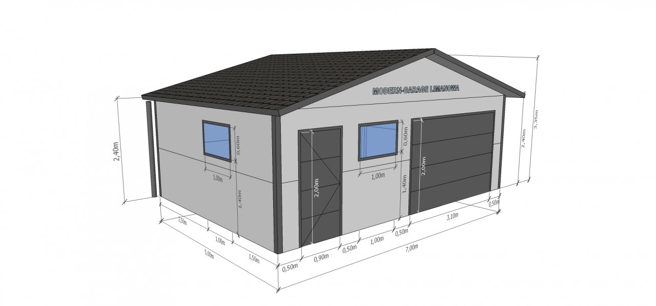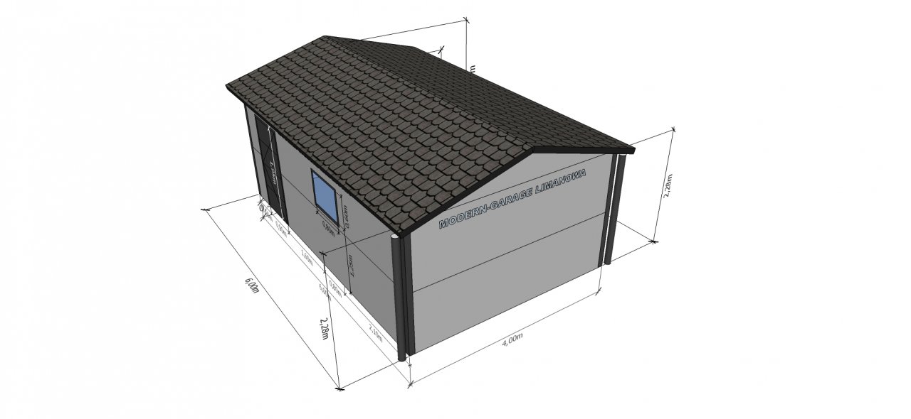 Nasz projekt uwzględnia techniczne rozwiązania konstrukcji z zachowaniem przewidzianych prawem rozmiarów; pozwalających wykonać garaż jedynie na podstawie zgłoszenia; powierzchnia do 35 m2. Garaż montujemy na miejscu w ciągu 24 godzin.